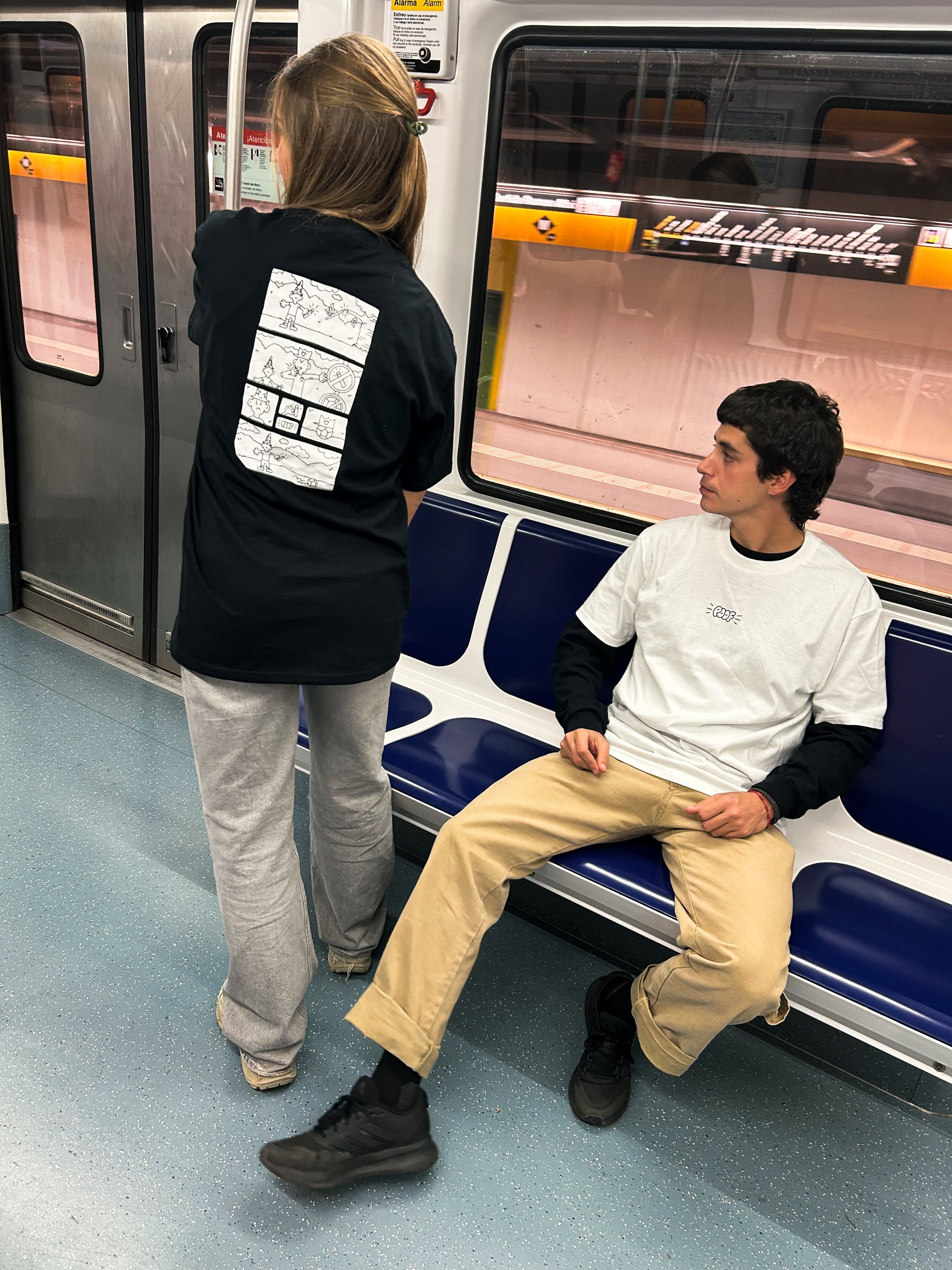 La camiseta blanca esta estampada con una tinta y la camiseta negra esta estampada con dos tintas.